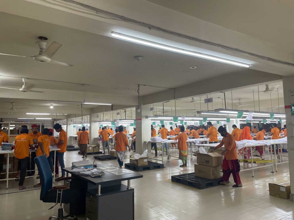 こんにちは!福嶋です。 ココでバングラ生活の色々をみなさんにお届けできたら嬉しいです。 私たちのお仕事は、主に日本へ出荷されるお洋服たちの検品です。 生地、縫製、採寸など、6工程に分けて細かく見ています。 プラスワングループの中で一番大きい検品センターが、バングラデシュのガジプールにあるアシュリアセンターです。 あちこちの工場から、毎日たくさんのアパレル用品がセンターへやってきます。 積み上げられたカートンの間は、ちょっとワクワクします。♪ お客さまに安心して着用いただけるように、私たちチームは日々奮闘しています。
